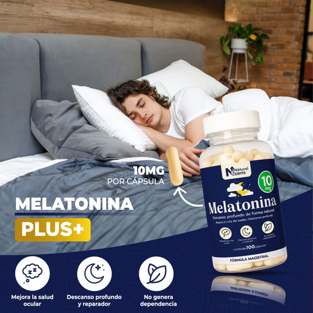 La melatonina es una hormona producida naturalmente por el cuerpo que participa en la regulación del ciclo sueño–vigilia. Su suplementación es utilizada como apoyo nutricional para mejorar la calidad del descanso.